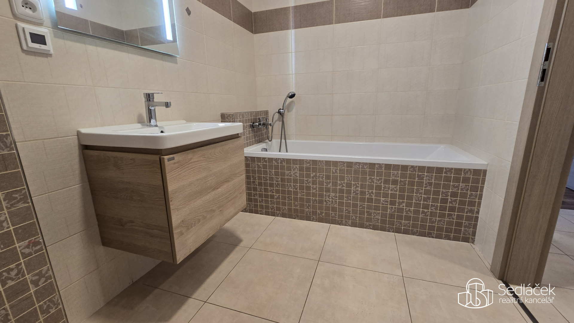 Byt prošel kompletní rekonstrukcí a je připraven k okamžitému užívání. Kuchyňská linka je vybavena myčkou nádobí, lednicí a varnou deskou. Koupelna disponuje vanou a toaletou, nechybí prostor pro pračku a sušičku. Na podlahách je kvalitní podlahová krytina. Byt má vlastní plynový kotel, což zajišťuje plnou kontrolu nad spotřebou.