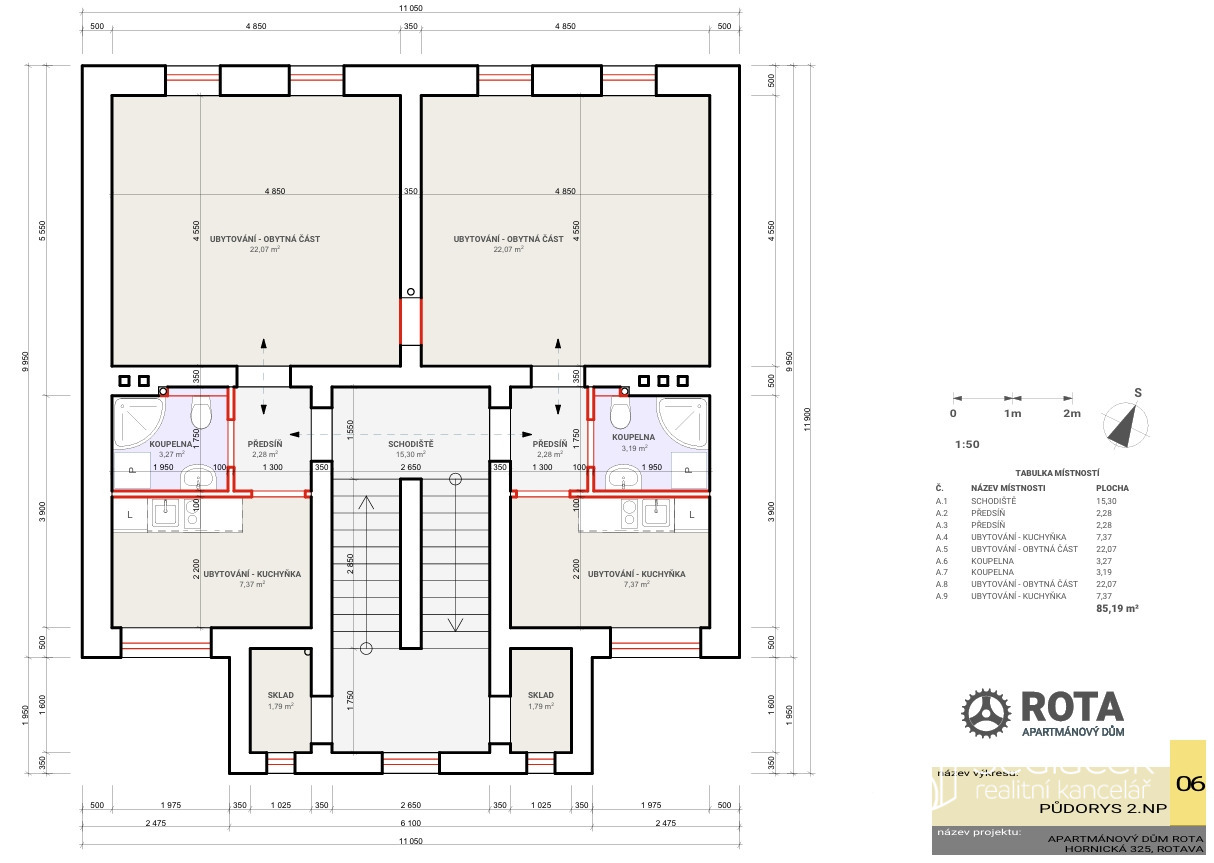 - 6 samostatných apartmánů (2 na každém podlaží)