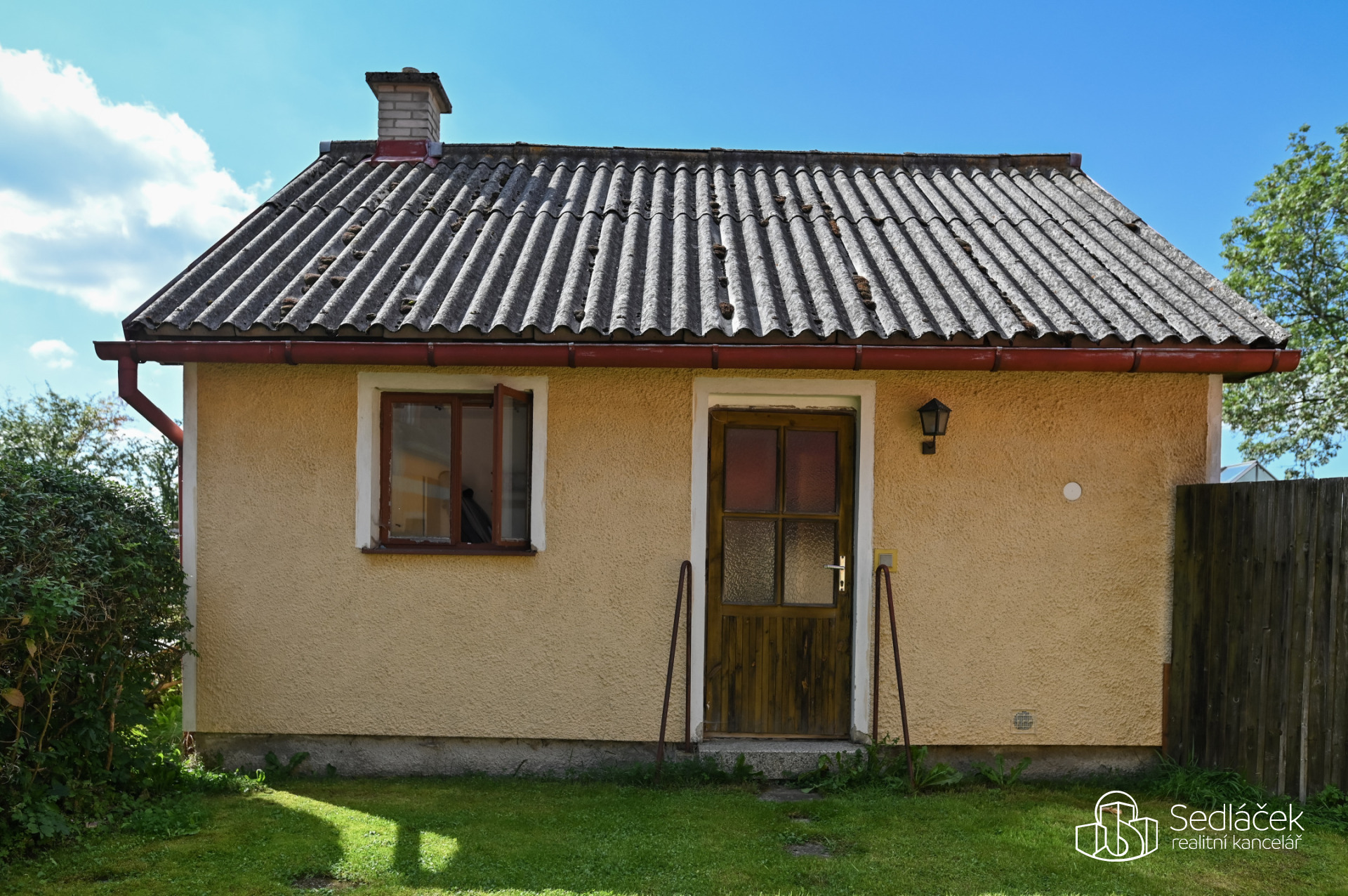 Za domem je zahrada ideální pro pěstování zeleniny nebo chov drobných zvířat – současný majitel zde chová slepice.