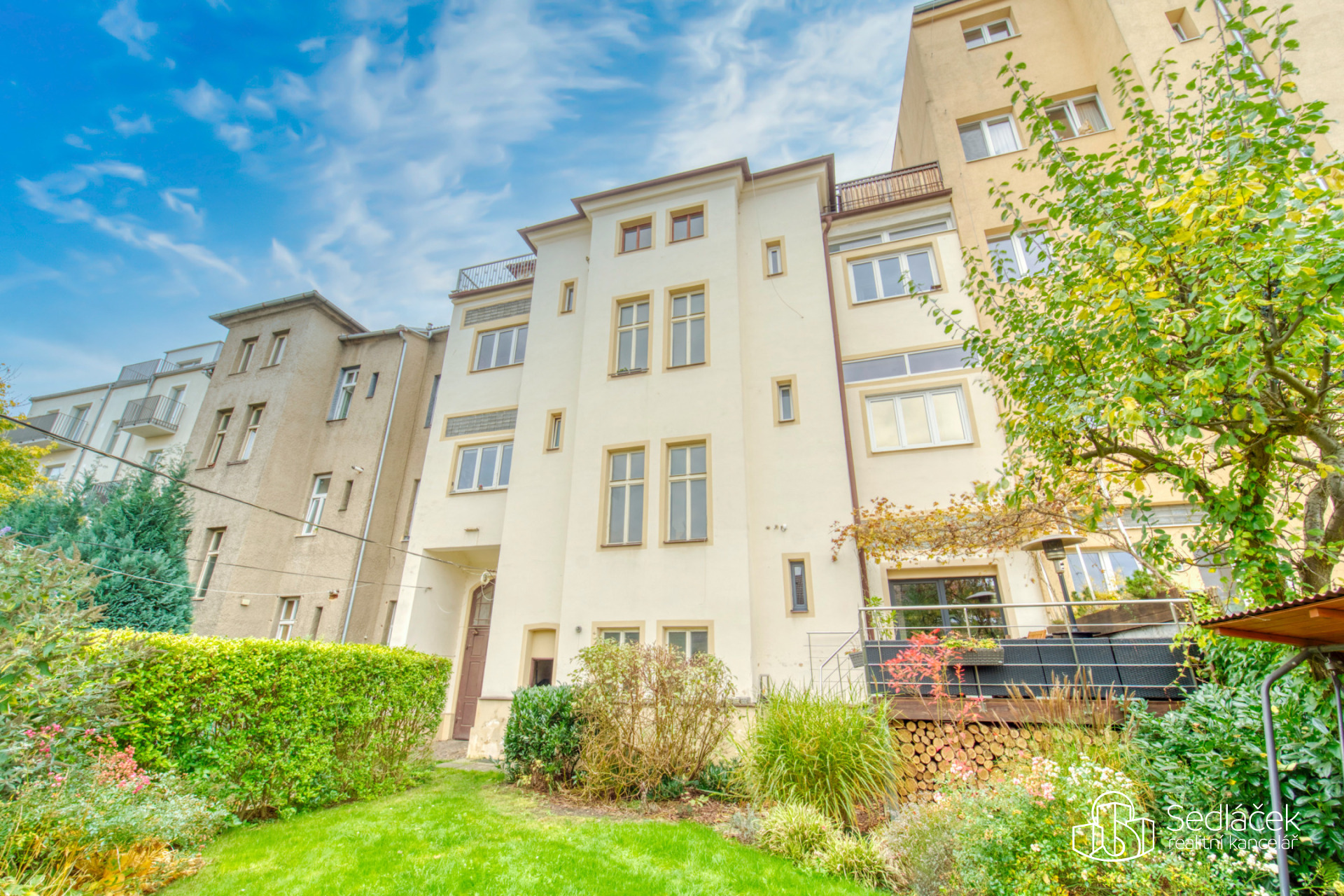 Velkou výhodou domu je společný dvorek, ideální pro posezení nebo klidné odpoledne. Dalším benefitem je docházková vzdálenost do centra Plzně – při svižné chůzi jste tam zhruba za deset minut.