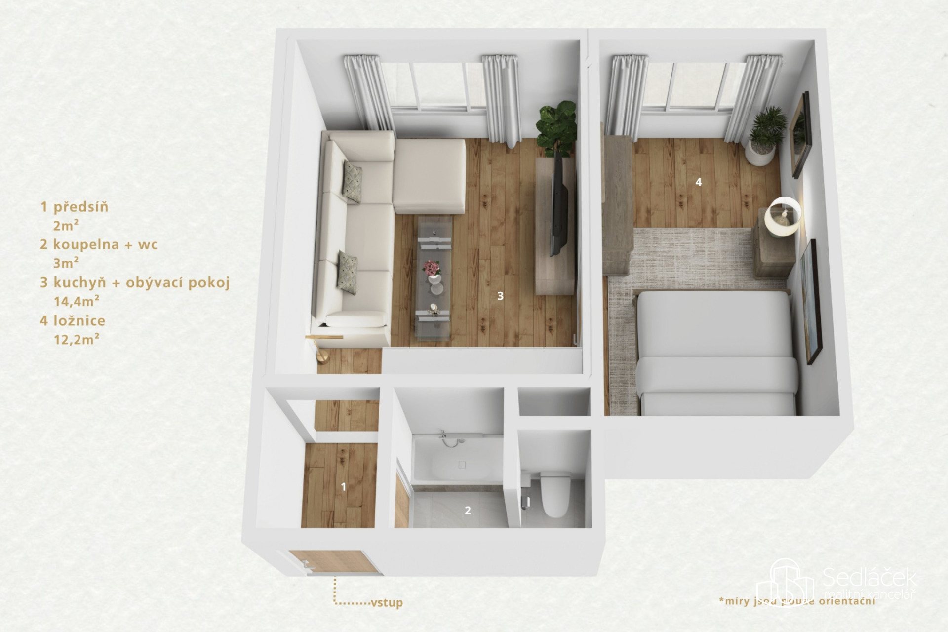 Dispozice bytu je detailně znázorněna v půdorysu, který naleznete v sekci fotografií.
