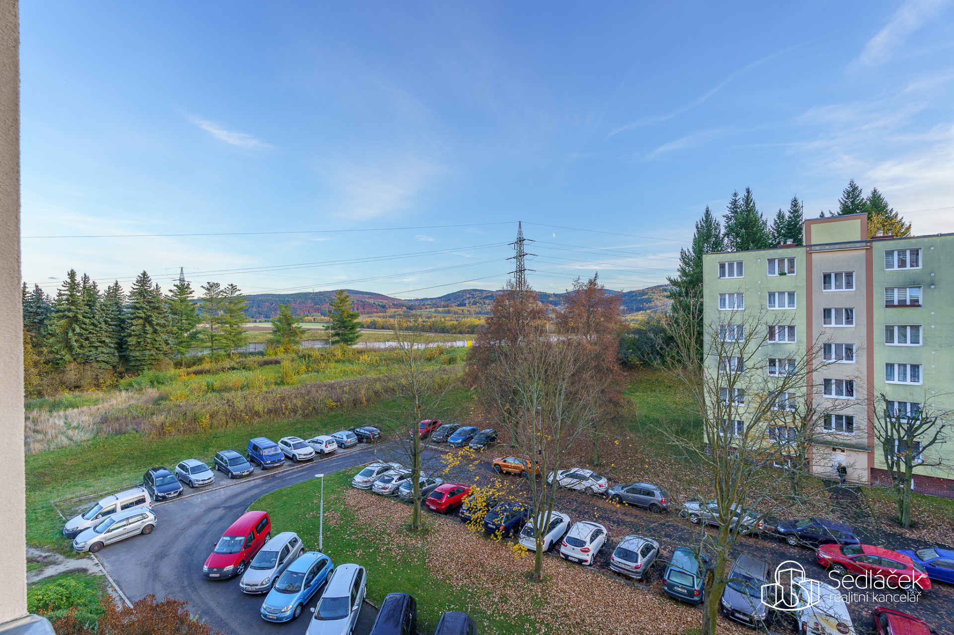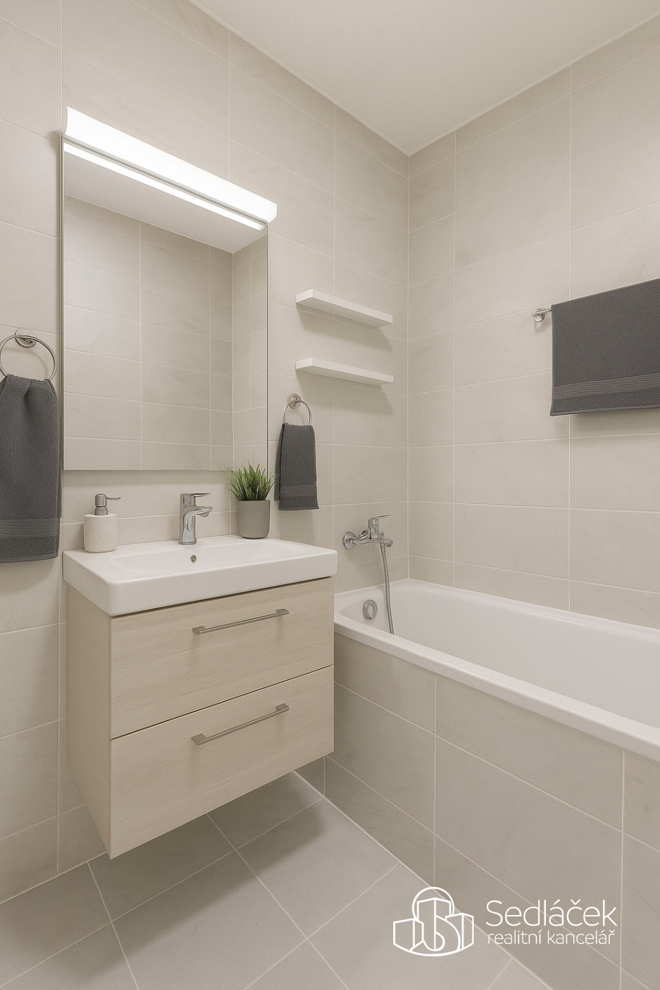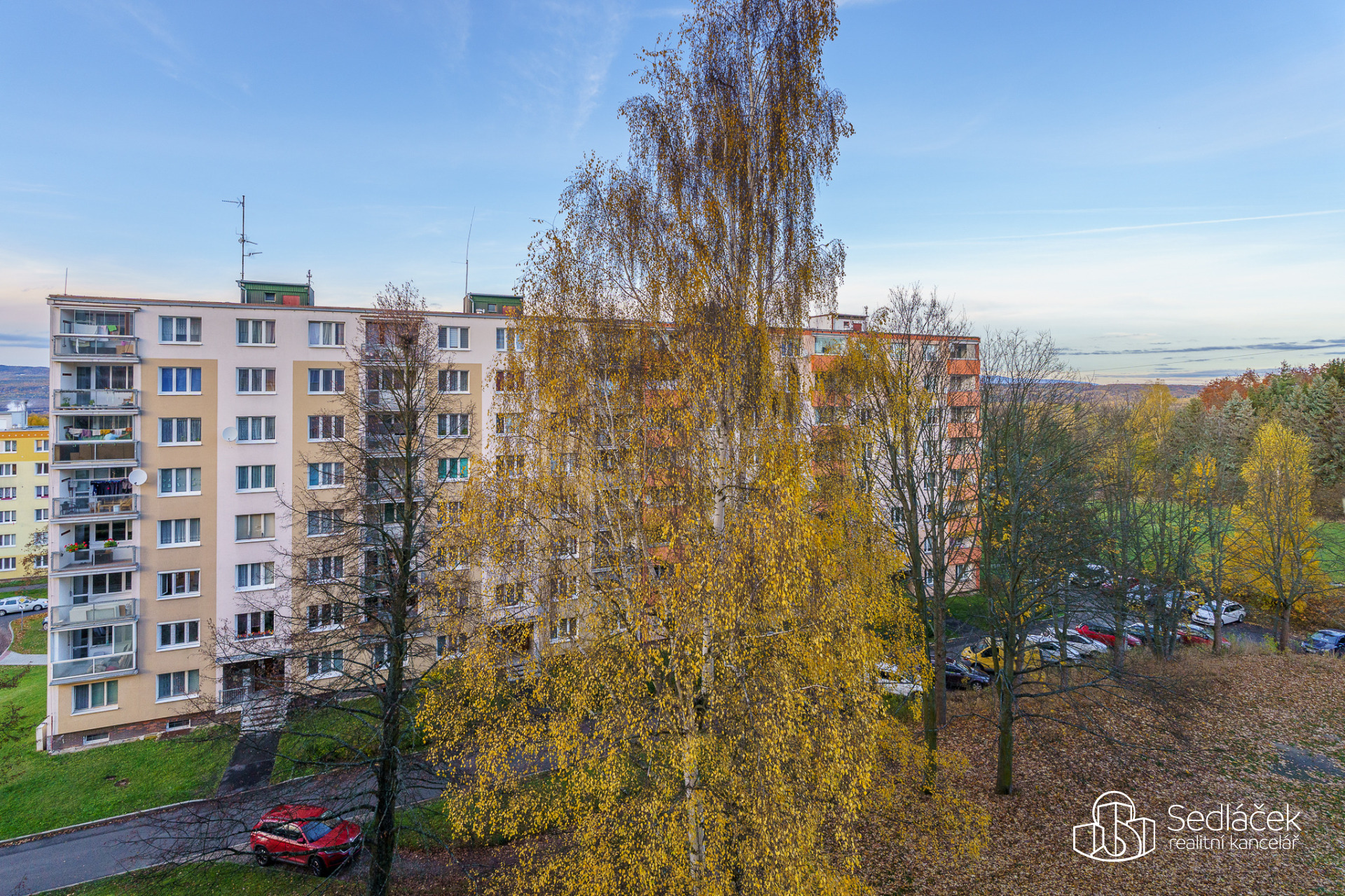Dispozice bytu je praktická - prostorná vstupní chodba tvoří přirozené srdce bytu, odkud je vstup do všech místností. Kuchyň je samostatná, s dostatkem prostoru pro jídelní stůl. Obývací pokoj působí otevřeně a prosvětleně, ideální pro společné chvíle s rodinou. Dva samostatné pokoje poskytují klid a soukromí, z jednoho z nich je vstup na lodžii s příjemným výhledem. Koupelna je vybavena vanou, toaleta je samostatná a doplněná o umyvadlo.