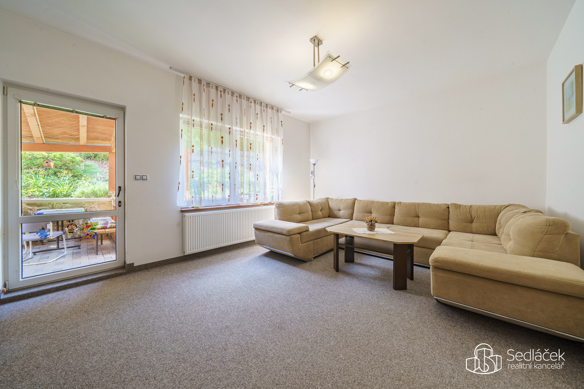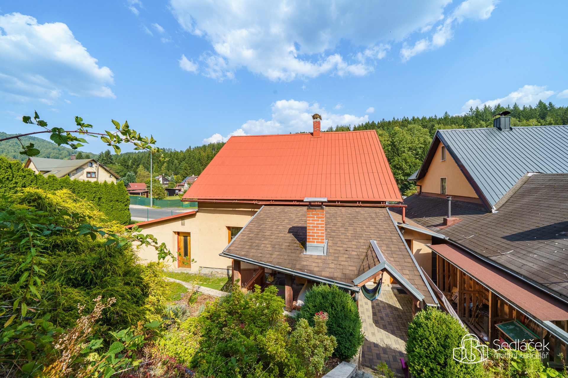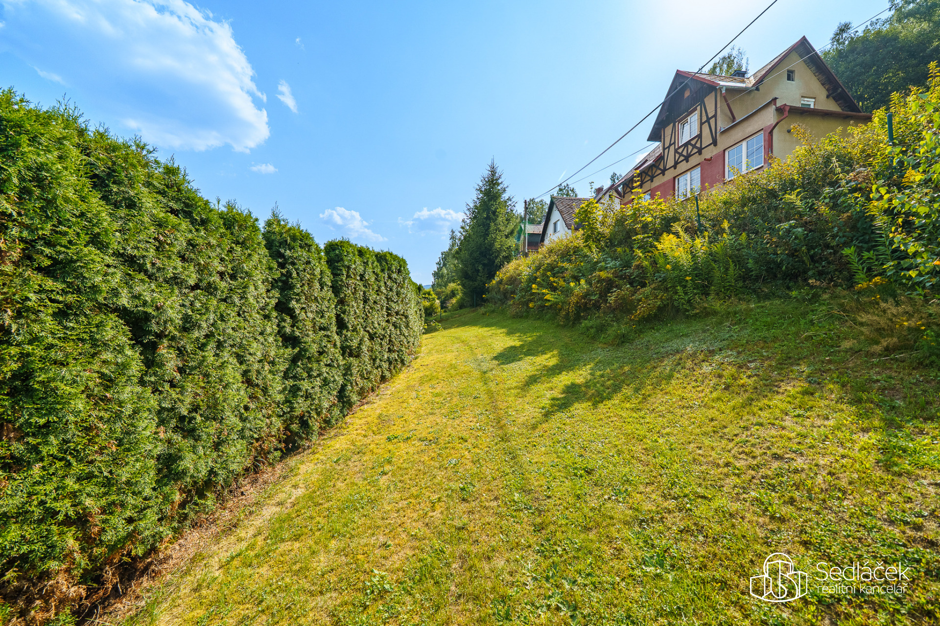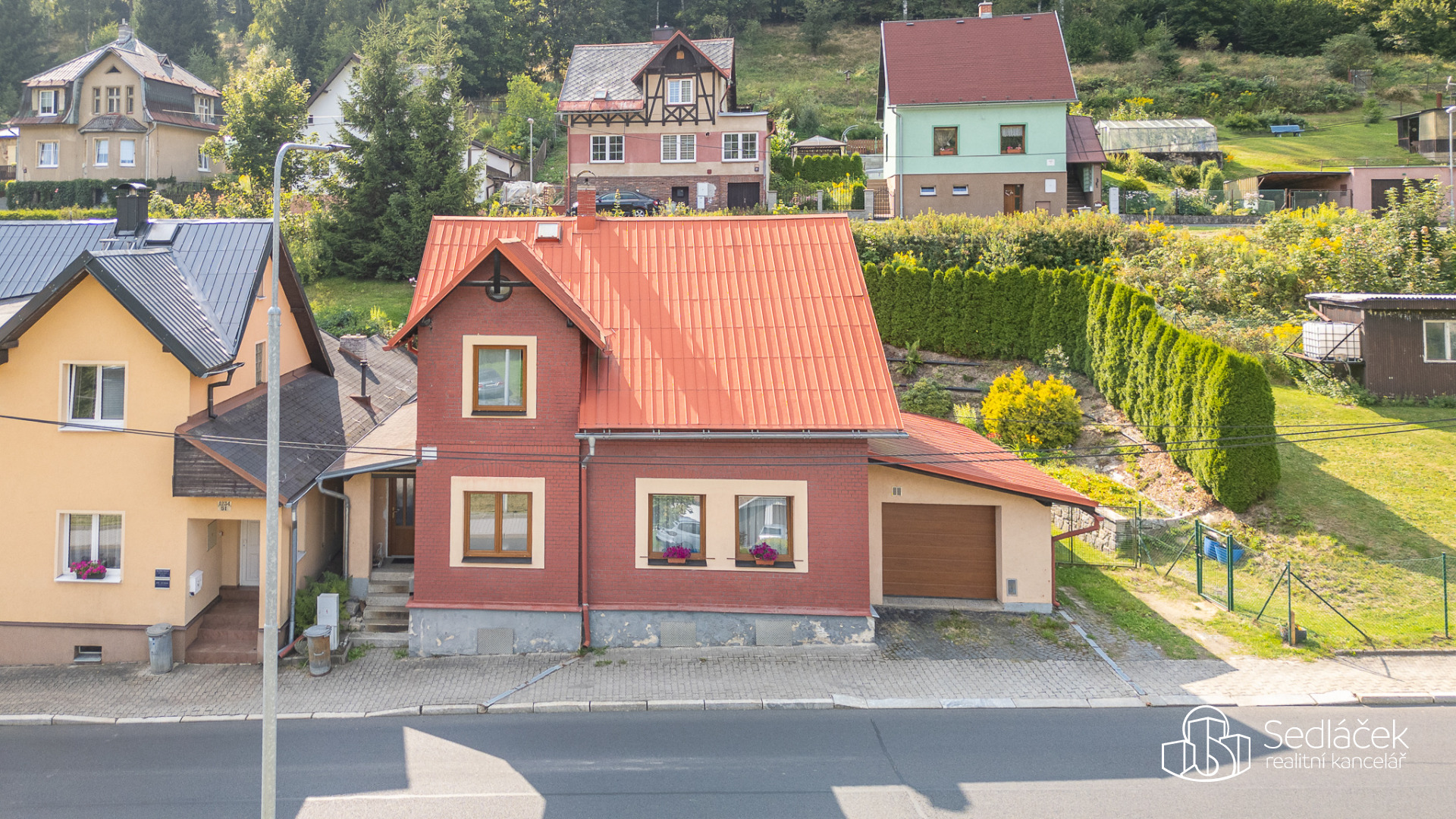 Zahrada je velmi udržovaná, najdete zde posezení s letní kuchyní, dětskou skluzavku i kůlnu na nářadí. Celkově je dům udržovaný a připravený k okamžitému bydlení.