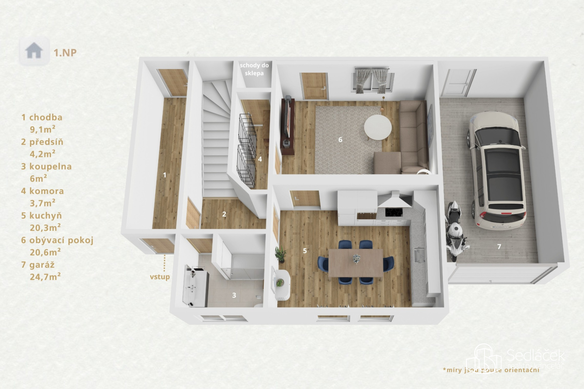 Dům je ve velmi dobrém stavu, částečně podsklepený s plochou 48 m² a součástí je i garáž o velikosti 25 m². Uvedené míry jsou orientační. V přízemí vás uvítá prostorná chodba s přímým vstupem na zahradu i do ulice. Kuchyň je velká, s vkusnou linkou, prostorem pro rodinné stolování, i dostatek úložného prostoru, které ocení každá hospodyně. Přes samostatný obývací pokoj projdete přímo do letní kuchyně, kde je posezení přímo ideální. Dostatek soukromí, zastřešení pro každé počasí a prostor pro velké rodinné oslavy. V přízemí dále najdete koupelnu se sprchovým koutem, praktickou komoru a vstup do sklepa.