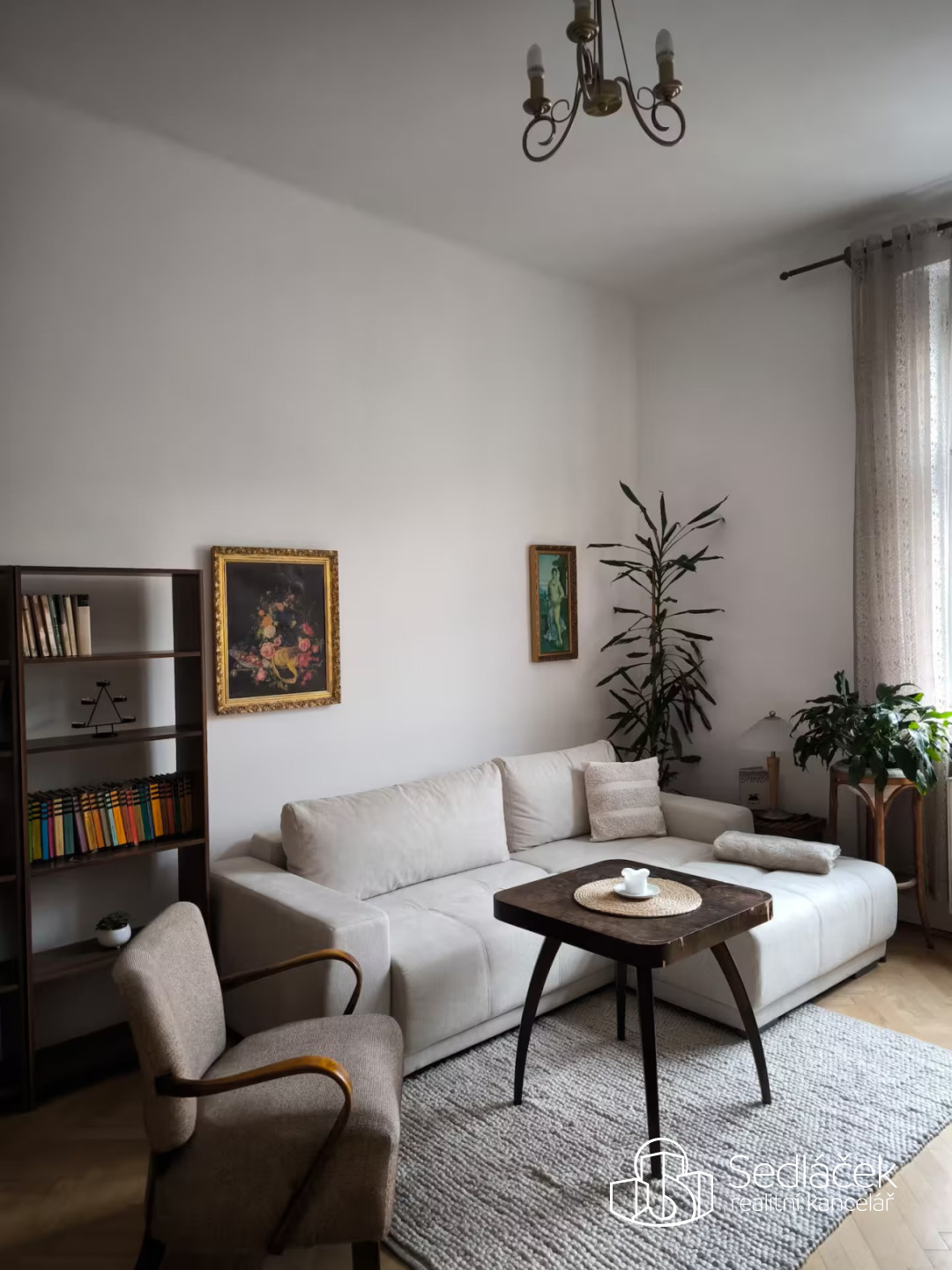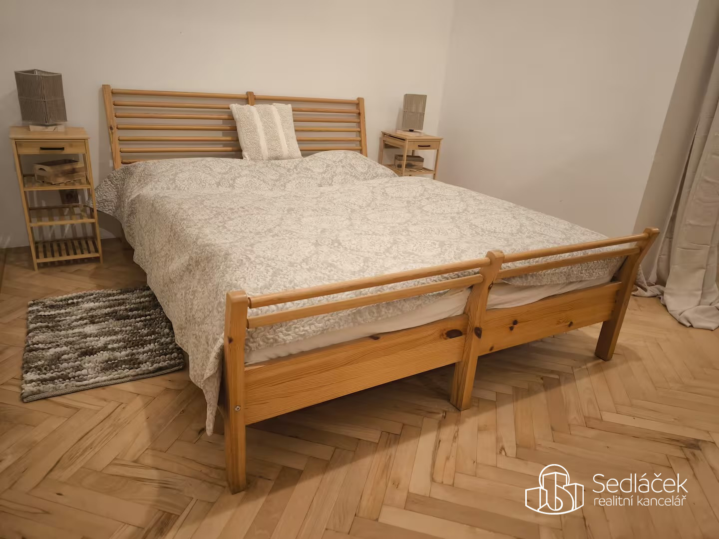 Byt nabízí praktickou a velmi příjemnou dispozici. Dominantou je prostorný obývací pokoj, dále samostatná ložnice a kuchyně vybavená kuchyňskou linkou s vestavnými spotřebiči, konkrétně elektrickou troubou, varnou deskou, myčkou a lednicí.