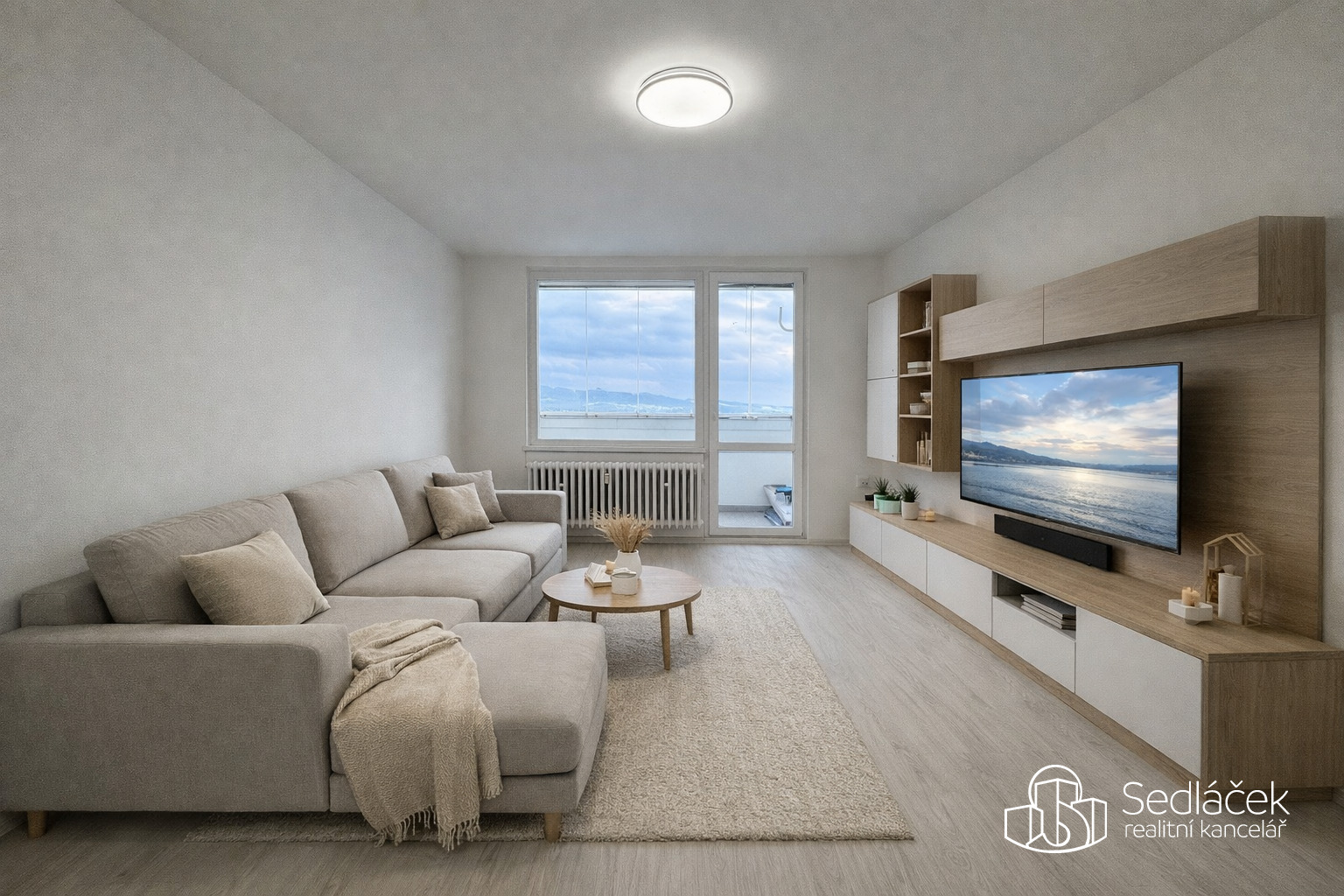 Dispozice bytu nabízí obývací pokoj se vstupem na balkon s nerušeným výhledem, neprůchozí pokoj a samostatnou kuchyň vybavenou kuchyňskou linkou s vestavěnými spotřebiči (elektrická trouba a varná deska). Koupelna je vybavena vanou a toaletou, zároveň je zde připraven prostor pro pračku a sušičku.