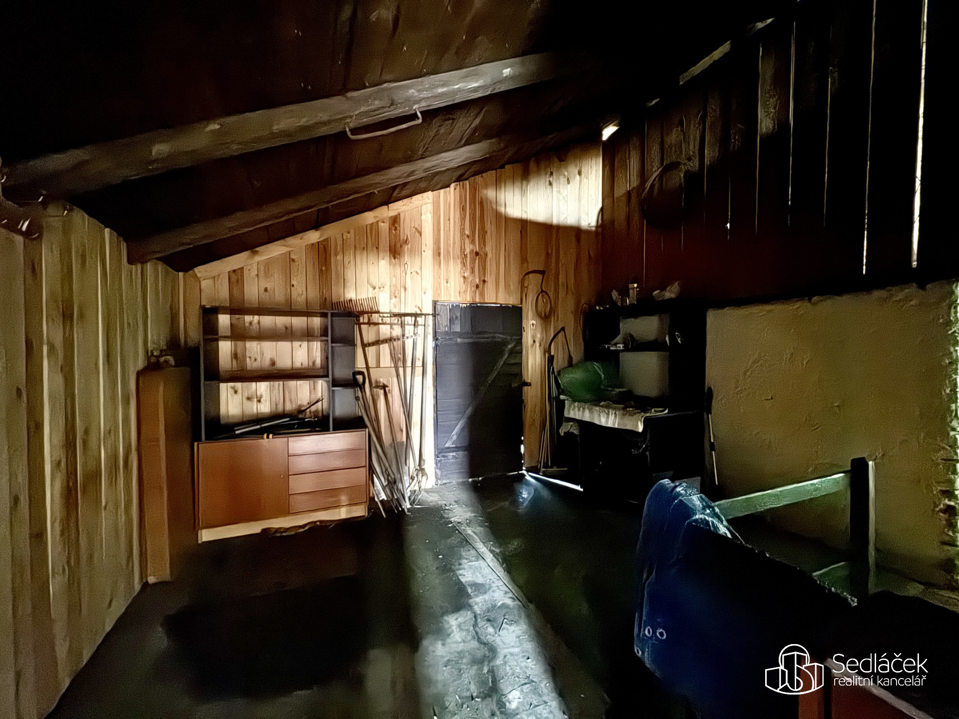 Za domem se nachází svažitá, ale velmi slunná zahrada, ideální pro terasovité úpravy, zahradničení nebo vytvoření klidové zóny pro odpočinek. Díky orientaci a otevřenému prostoru působí pozemek vzdušně a nabízí příjemné výhledy.