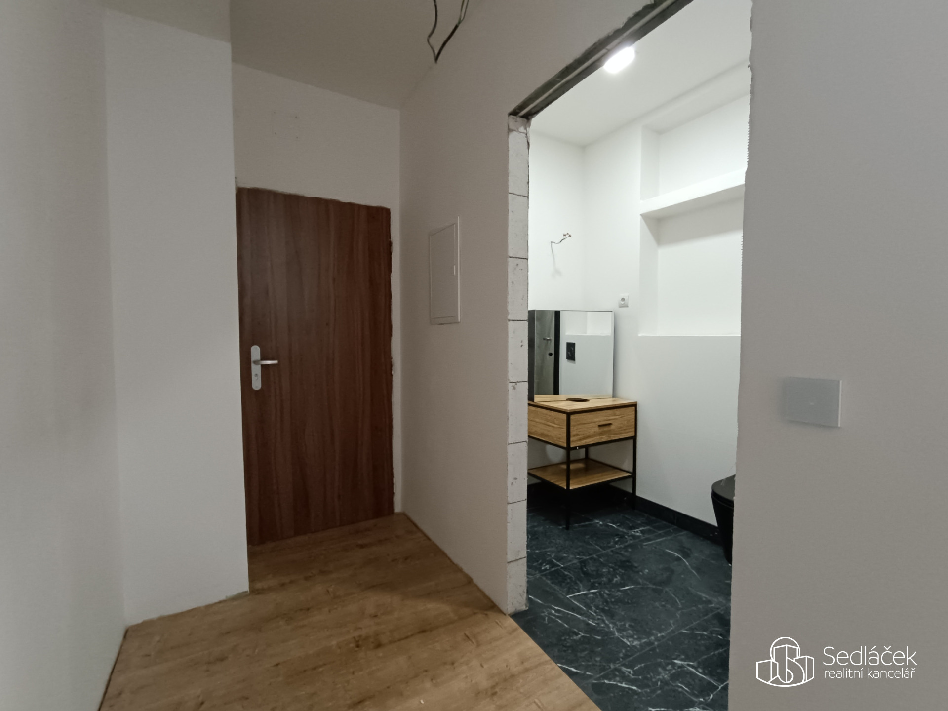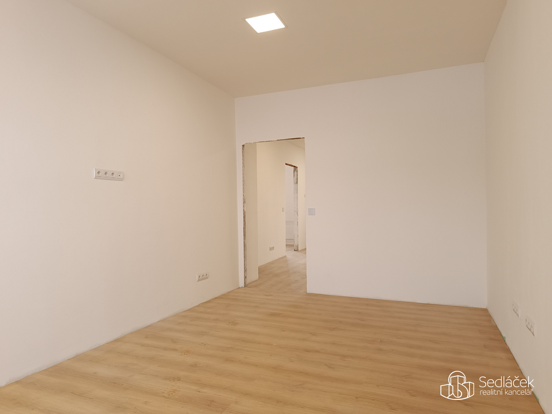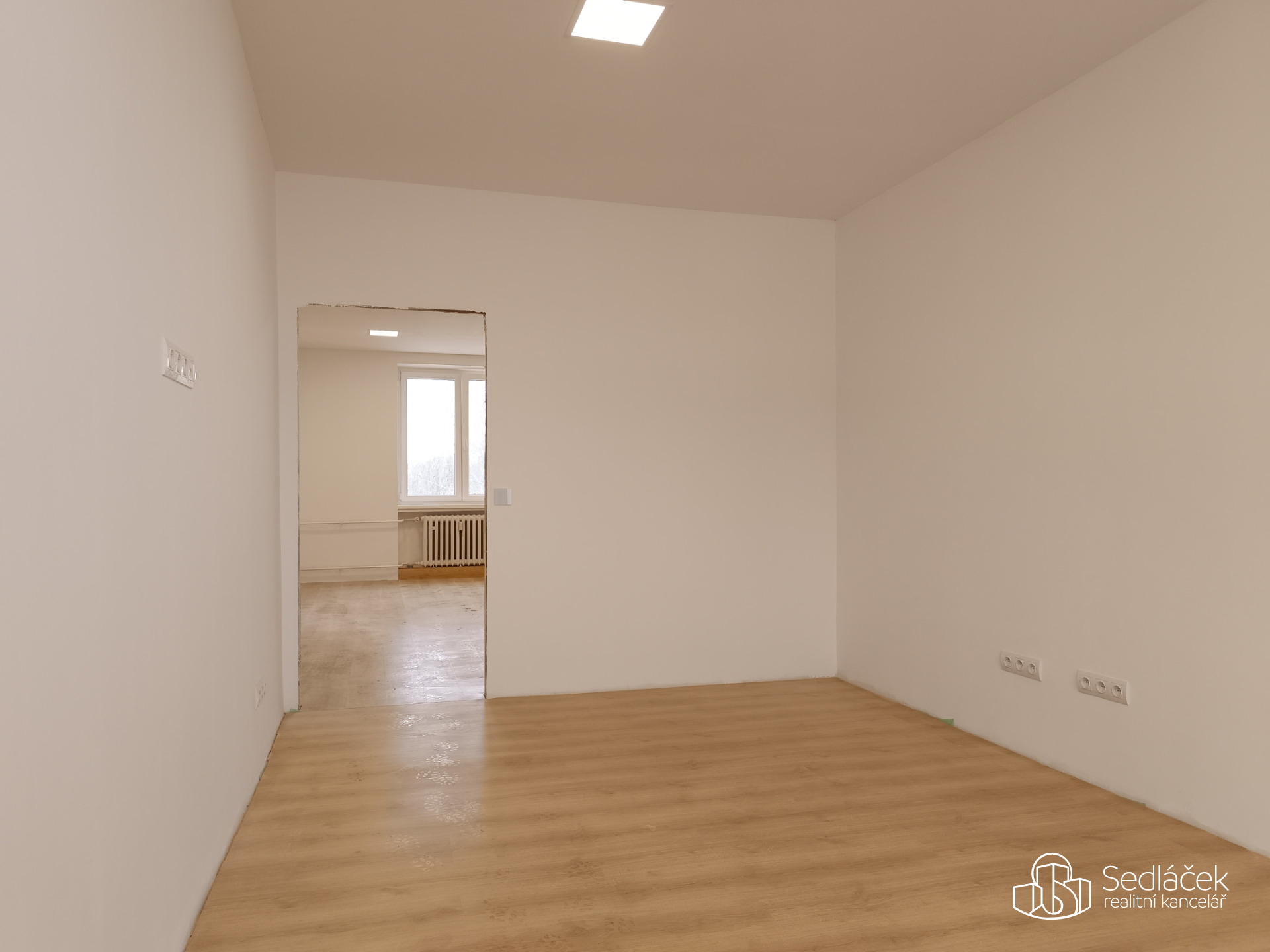 V zastoupení našeho klienta Vám ke koupi nabízíme byt 3+kk, který se nachází ve třetím patře zatepleného bytového domu, v klidné části ulice Hornická v Sokolově. Tento byt o celkové užitné ploše 53 m² prošel v loňském roce kompletní rekonstrukcí. Původní dispozice 2+1 byla moderně upravena tak, aby odpovídala současným nárokům na bydlení. Dominantou bytu je obývací pokoj s nově vytvořeným kuchyňským koutem, který je připraven na instalaci kuchyňské linky ve tvaru písmene „U“ – ideální řešení pro maximální využití prostoru (vizualizační fotografie znázorňuje, jak byl kuchyňský kout navržen). Díky přesunutí kuchyně vznikl v původní kuchyni plnohodnotný samostatný pokoj, vhodný jako ložnice, dětský pokoj nebo pracovna. Koupelna je spojena s WC a nabízí moderní walk-in sprchový kout s posuvnými dveřmi. V celém bytě jsou laminátové (plovoucí) podlahy, snížené stropy, LED osvětlení a moderní dotykové vypínače, které podtrhují současný charakter interiéru. Byt je připraven k dokončení dle představ nového majitele, kuchyňská linka není součástí. Obložky stavebních otvorů, interiérové dveře a zalištování podlah, může být po dohodě dokončeno současným majitelem.