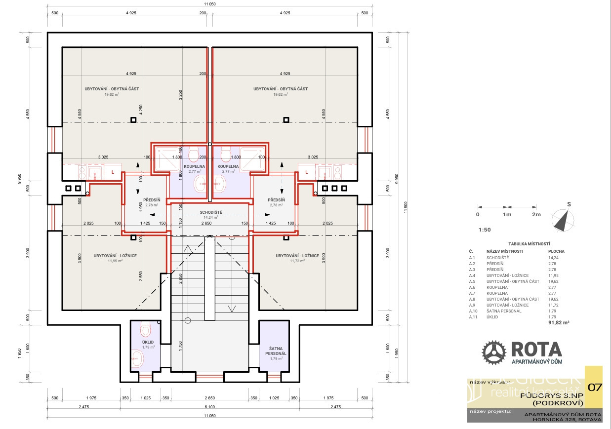 - 6 samostatných apartmánů (2 na každém podlaží)