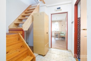 Vstup do domu je možný přes verandu a centrální chodbu. Koupelna je vybavena vanou a je propojena s toaletou. V této místnosti se nachází plynový kotel, který zajišťuje vytápění domu. Kuchyně je samostatná a sousedí s obývacím prostorem. V horním patře domu se nachází jedna obytná místnost a dvě komory podkrovního typu. Půda je nízká, pochozí. U domu je garáž - dilna. Dvorek je vydlážděn. Zahrada domu je mírně svažitá, slunná, na zahradě zahradní domek.