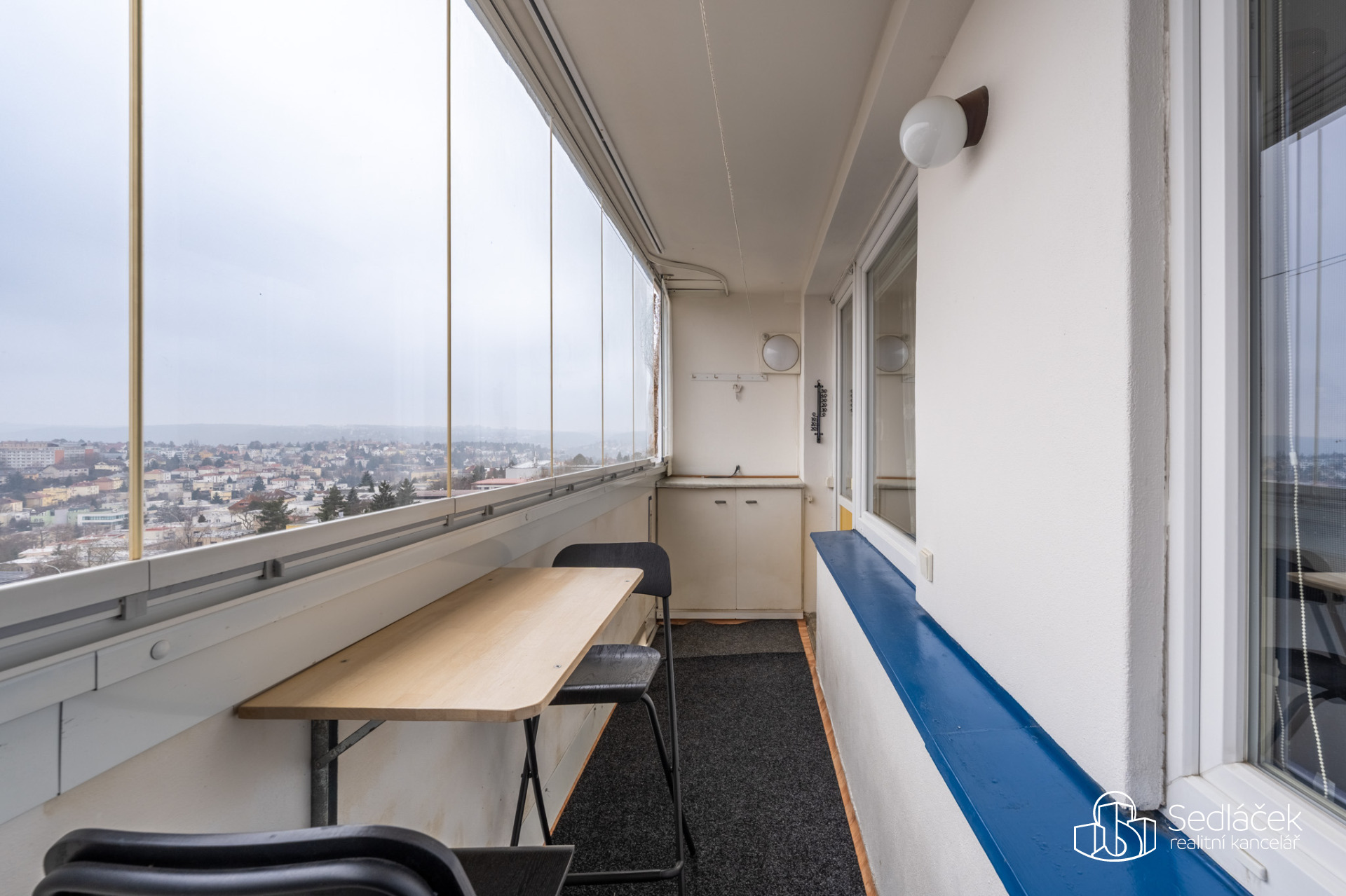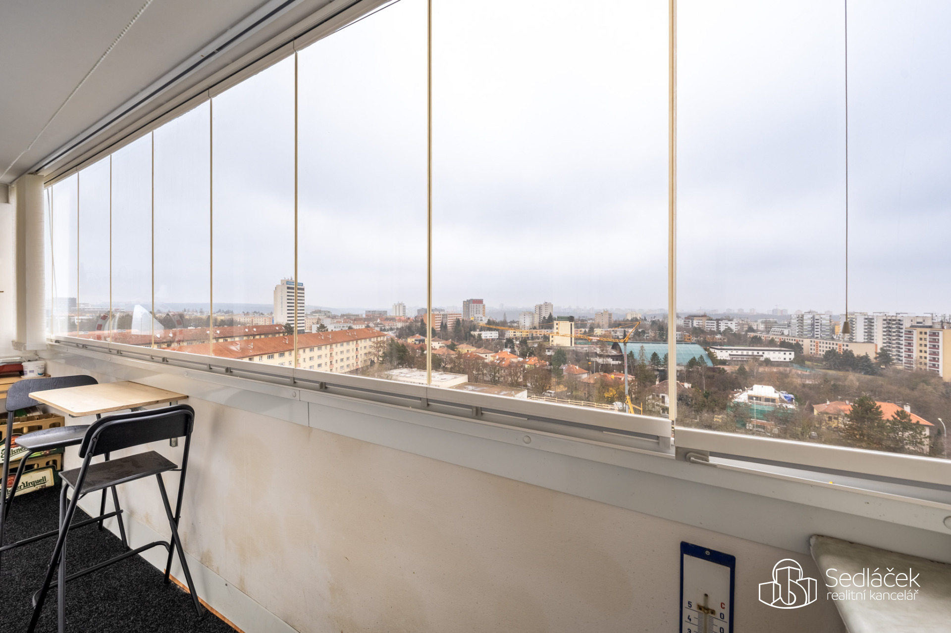 Jednou z hlavních předností tohoto bytu jsou unikátní a ničím nerušené výhledy. Z jedné strany se otevírá panorama s výhledem na Pražský hrad, z druhé strany výhled až na Cukrák. Každý den zde nabízí mimořádnou atmosféru, dostatek světla a pocit otevřeného prostoru.