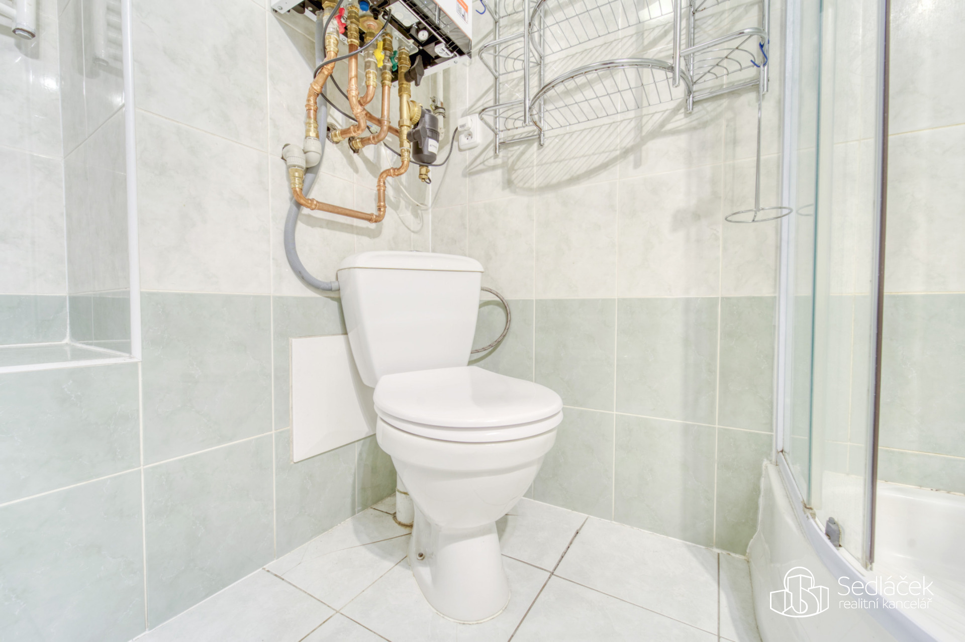 Byt se nachází ve velmi dobrém stavu a zaujme členitým dispozičním řešením. V hlavní obytné části se nachází prostorná kuchyně s jídelním koutem, odkud je vstup na terasou s výhledem na město. Dřevěné trámy dodávají interiéru příjemnou atmosféru. Koupelna nabízí vanu i sprchový kout, vytápění zajišťuje nový kondenzační plynový kotel. Dále jsou zde dva samostatné pokoje a komora.