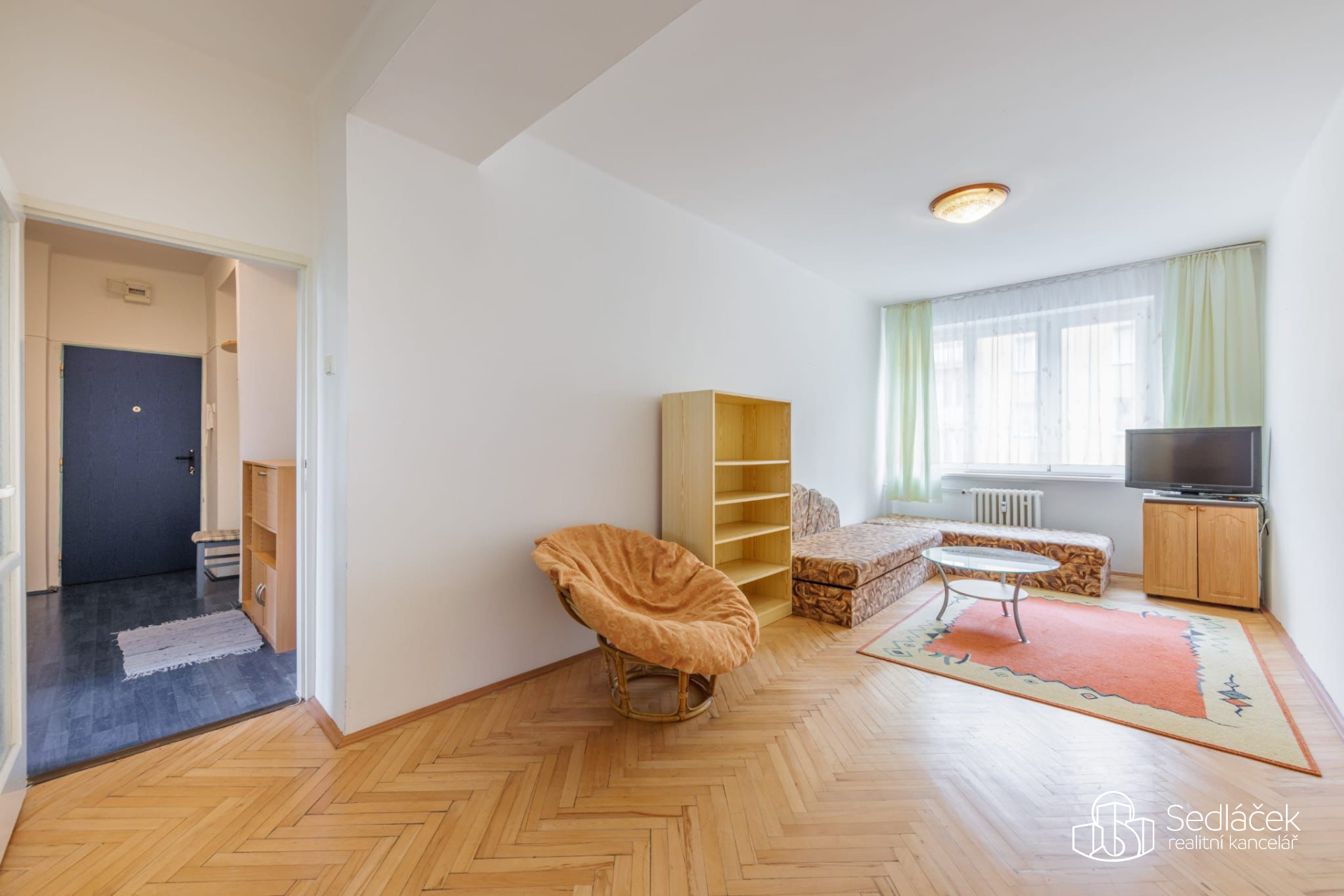 Pronajímá se včetně zařízení. Součástí je plynový sporák, jídelní stůl, v ložnici prostorná skříň, postel jednolůžko, komody, psací stůl.