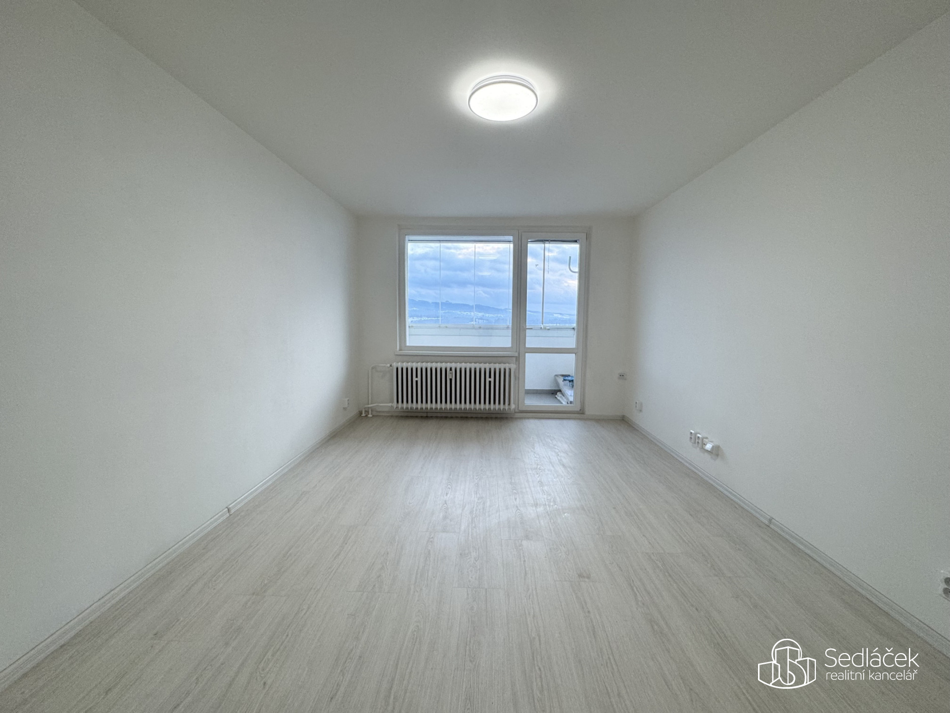 Dispozice bytu nabízí obývací pokoj se vstupem na balkon s nerušeným výhledem, neprůchozí pokoj a samostatnou kuchyň vybavenou kuchyňskou linkou s vestavěnými spotřebiči (elektrická trouba a varná deska). Koupelna je vybavena vanou a toaletou, zároveň je zde připraven prostor pro pračku a sušičku.
